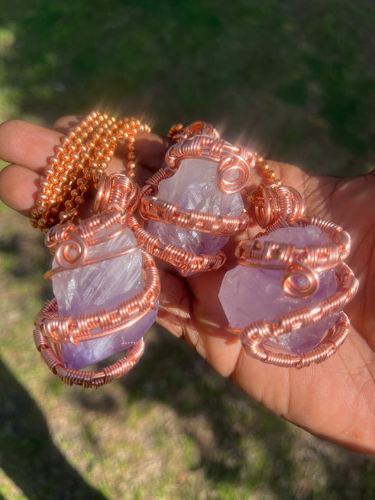Copper Amethyst Pendant/ Copper Ball Chain