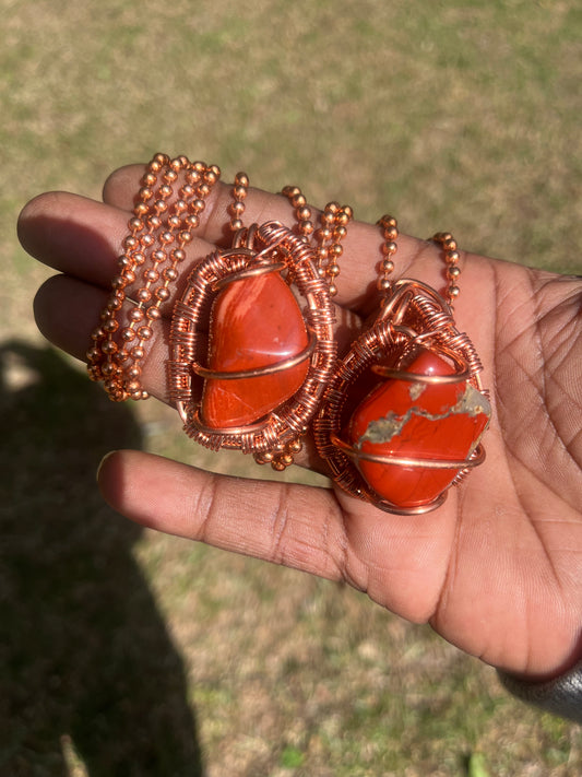 Red Jasper Pendant/ Cooper Ball Chain