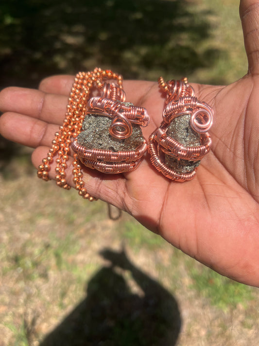 Copper Wrapped Pyrite Pendant/ Copper Ball Chain