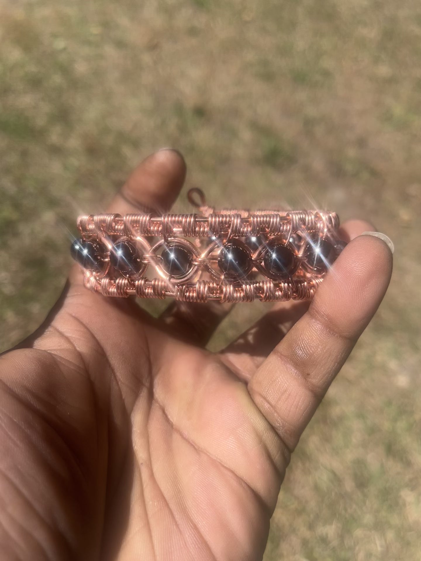 Copper Wrapped Hematite Bracelet/ Adjustable